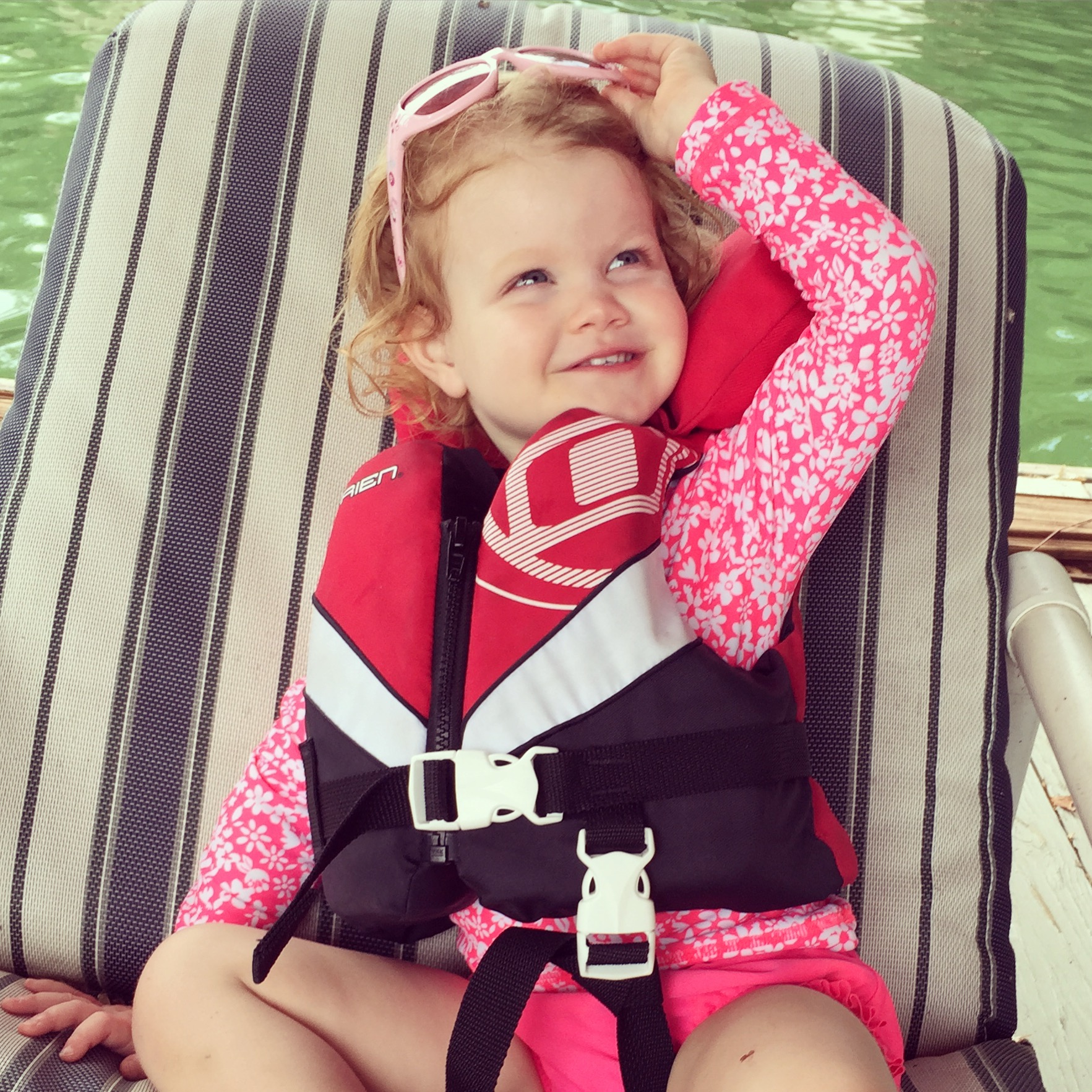 Water — We just got home from a week at the beach and you were a dream! You love water of all kinds…pool, lake, sea. You’re learning to “splash,” and are becoming more confident by the day.