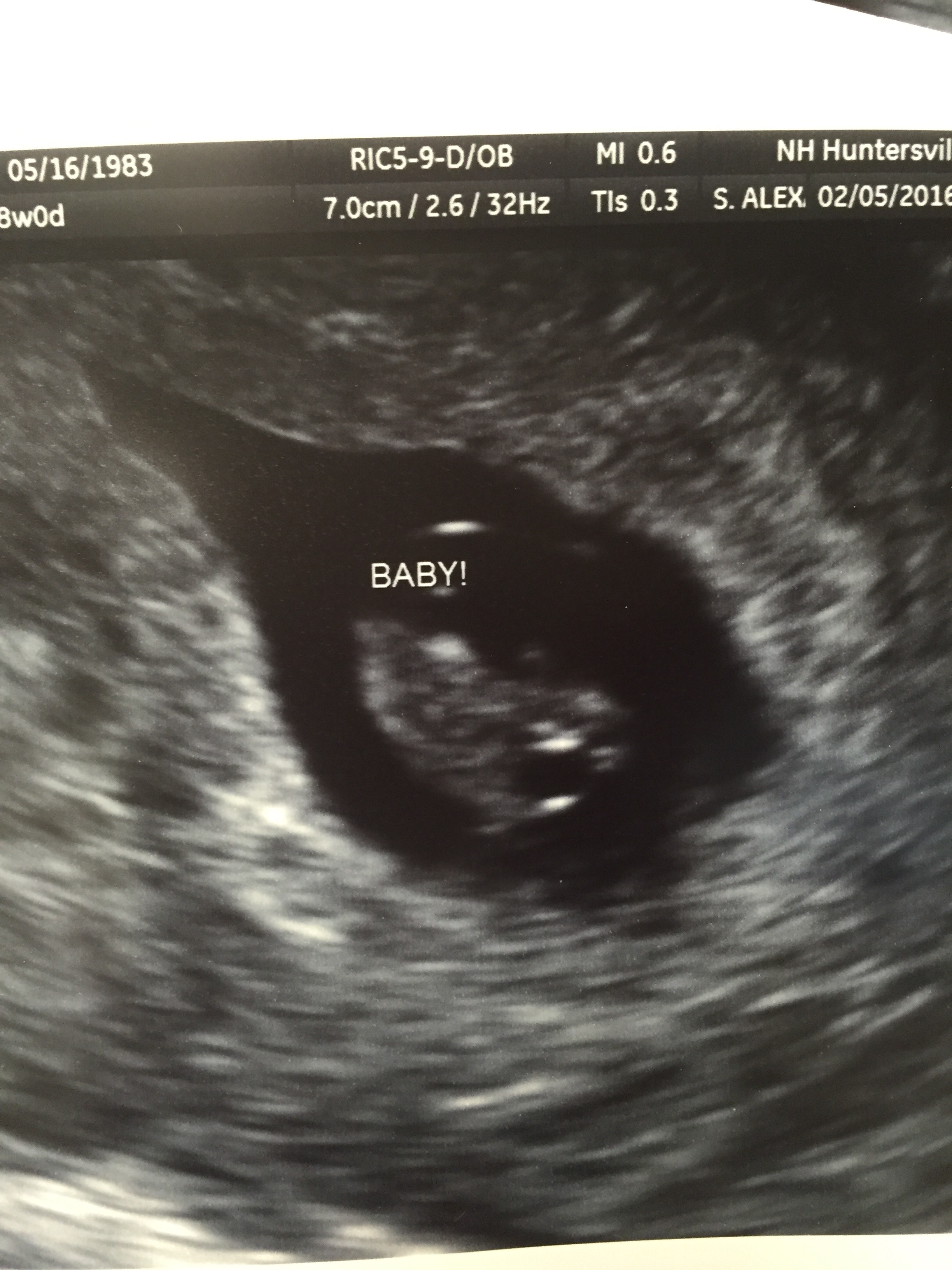 We have one hiccup to conquer — you’re still transverse, with your little head under my right rib, and your little booty under my left. We’ve been seeing the OB frequently, and they’re giving us a few more weeks to move you on our own. I’ve been walking on the treadmill and trying some wild inversion positions (like hanging off the couch upside-down — with Daddy’s help, of course) and am looking into a chiropractor. If we’re unable to move you into the normal head-down vertical position, we’ll need to schedule a C-section the week before your due date. Either way, we’ll have you here safely soon. We promise!