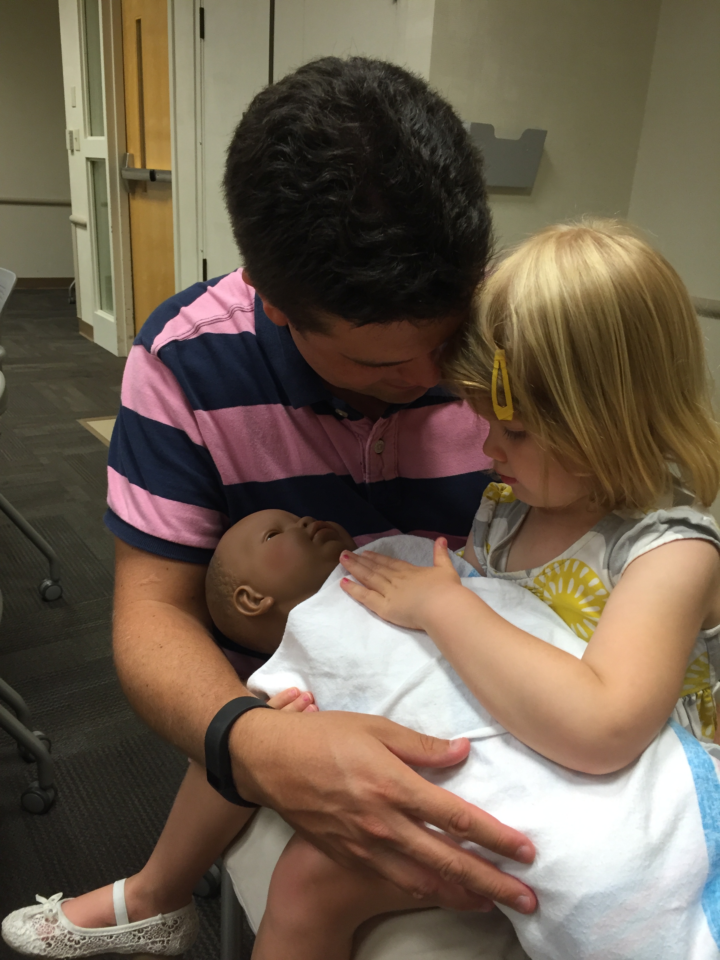 Big Sister is getting ready, too! Yesterday was the Sibling Tour at our hospital and Claire had a chance to practice diapers and swaddling with doll babies…plus see the delivery suite. She started the class a bit unsure (the words “I don’t want a baby” did come out of her mouth…) — but by the end, she was feeling the love.