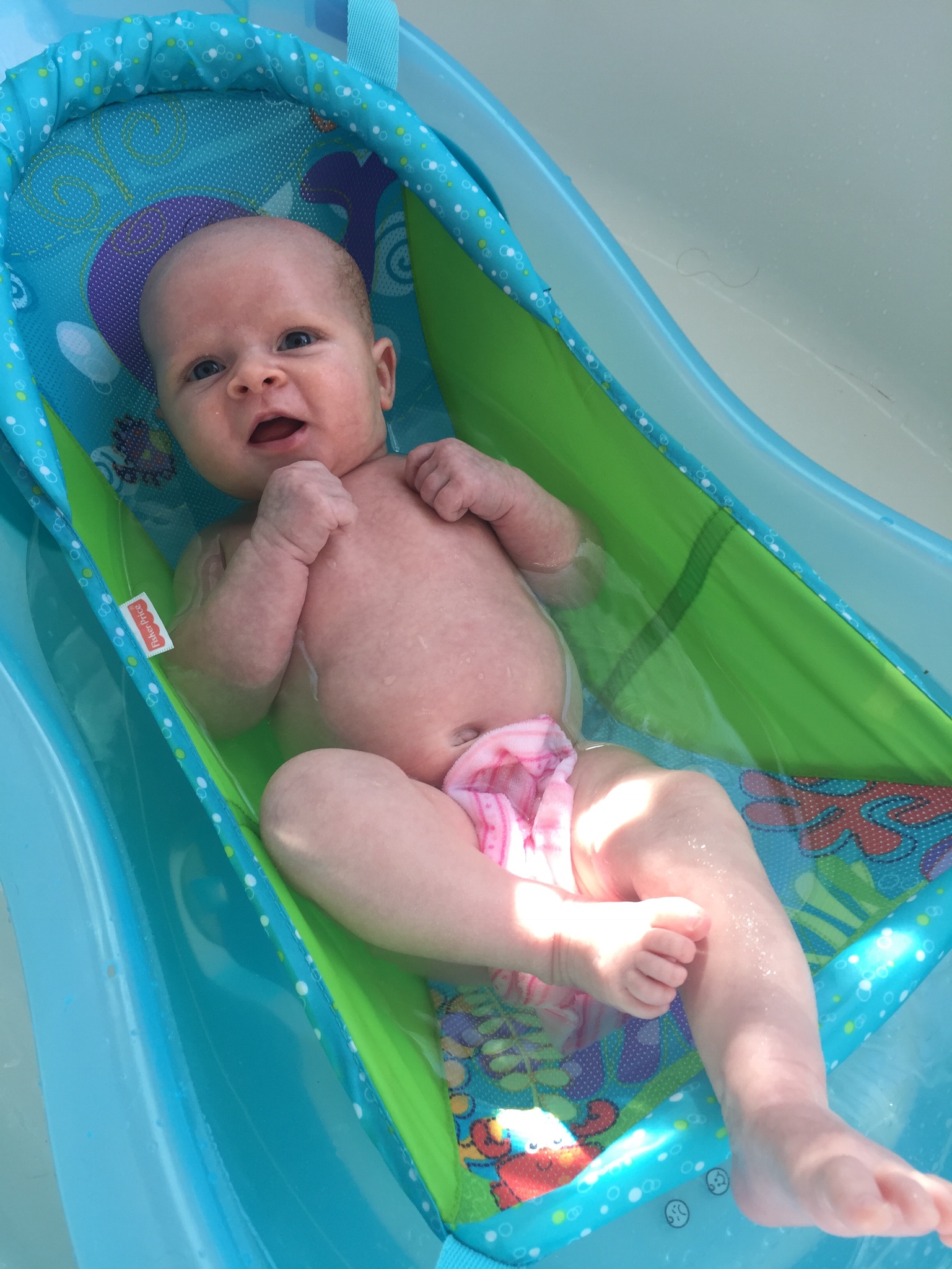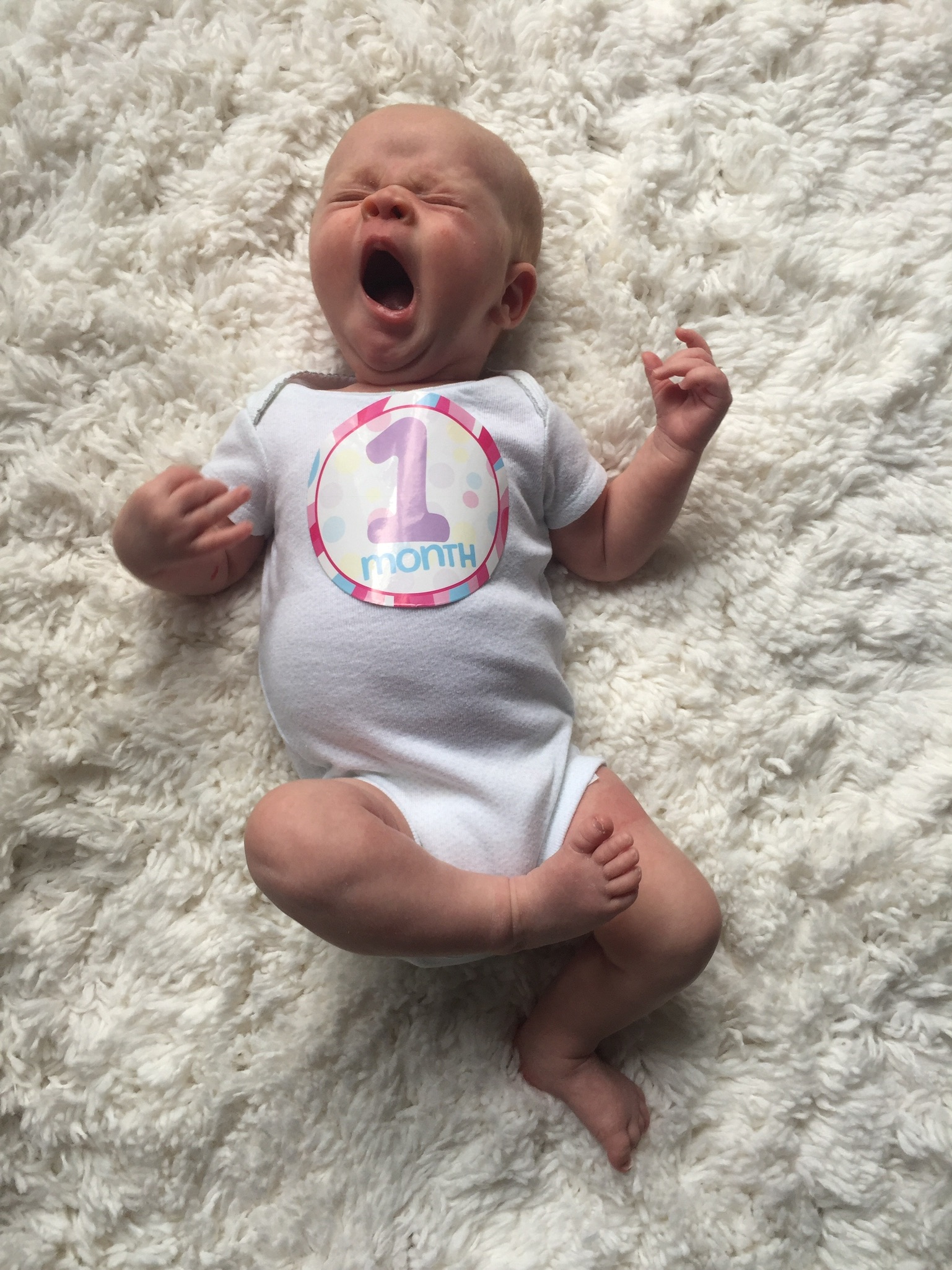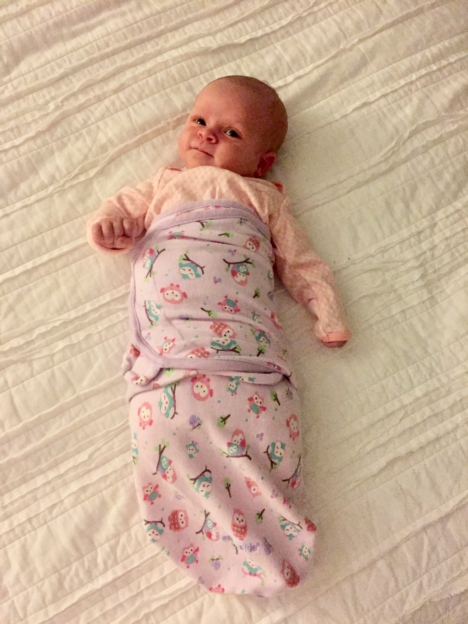 Once we got home, you slept for four weeks (swaddled without arms) in a Pack-n-Play in Mommy and Daddy’s room. Unfortunately we’re all (ahem!) “loud” sleepers…so you’ve now made the big move to your own crib. Thankfully you’re a fan, and are much better at putting yourself to sleep than we were used to with Baby Claire. You’re still waking every 2 to 3 hours during the night, but once you have a clean diaper (thank you Daddy!) and fully belly, we can all be back to bed within about 20 or 30 minutes. No complaints here, sweet girl!