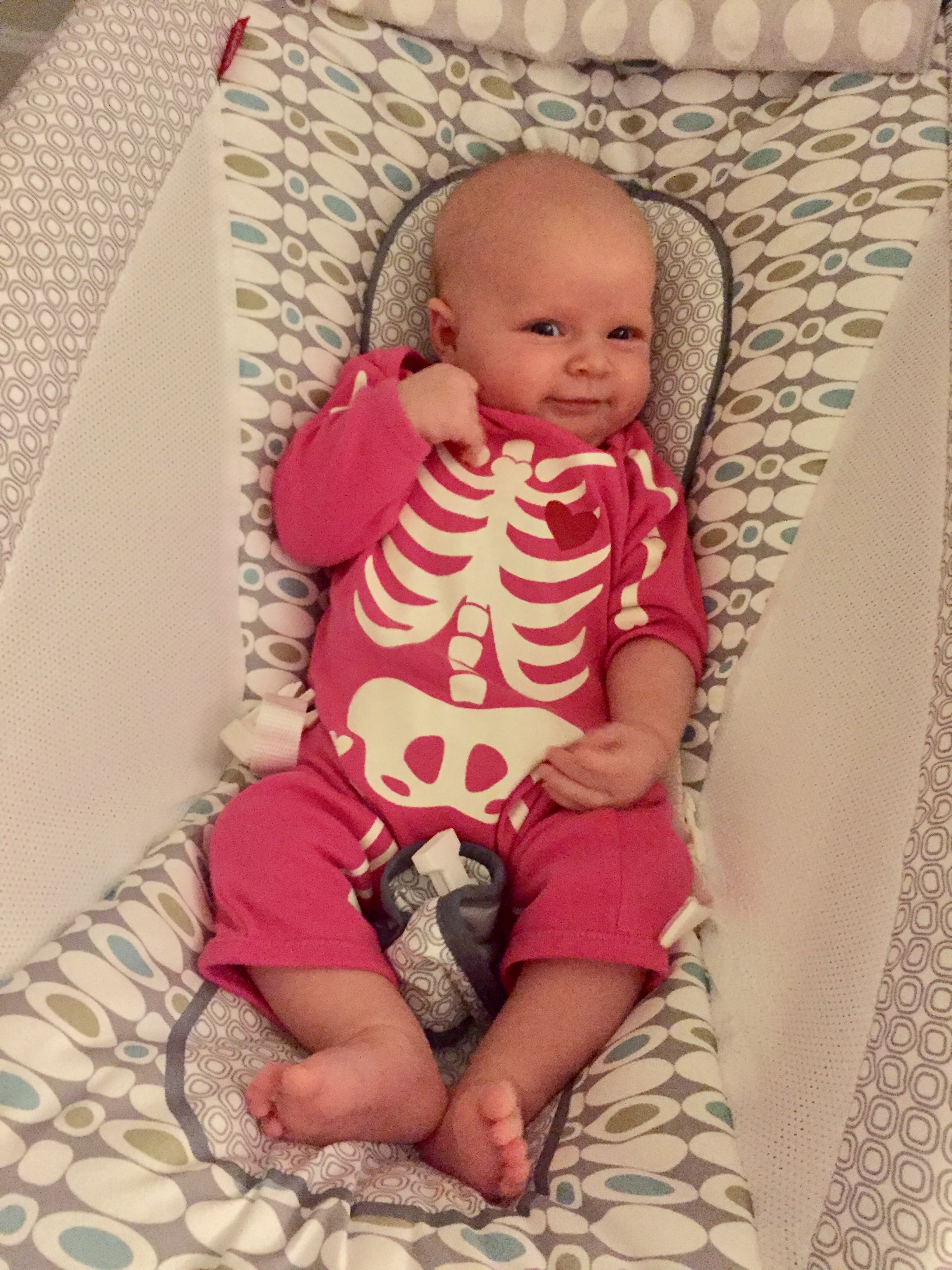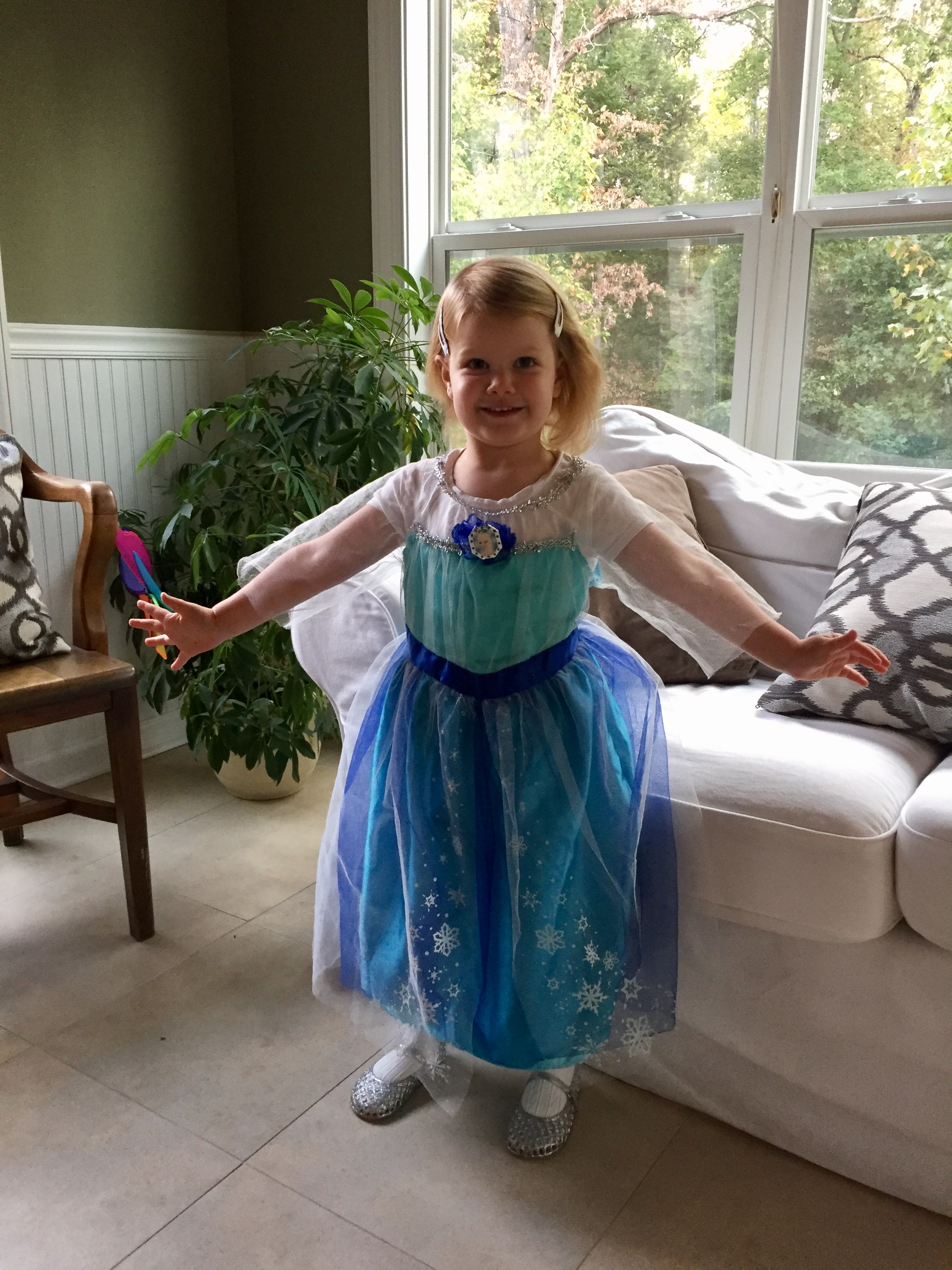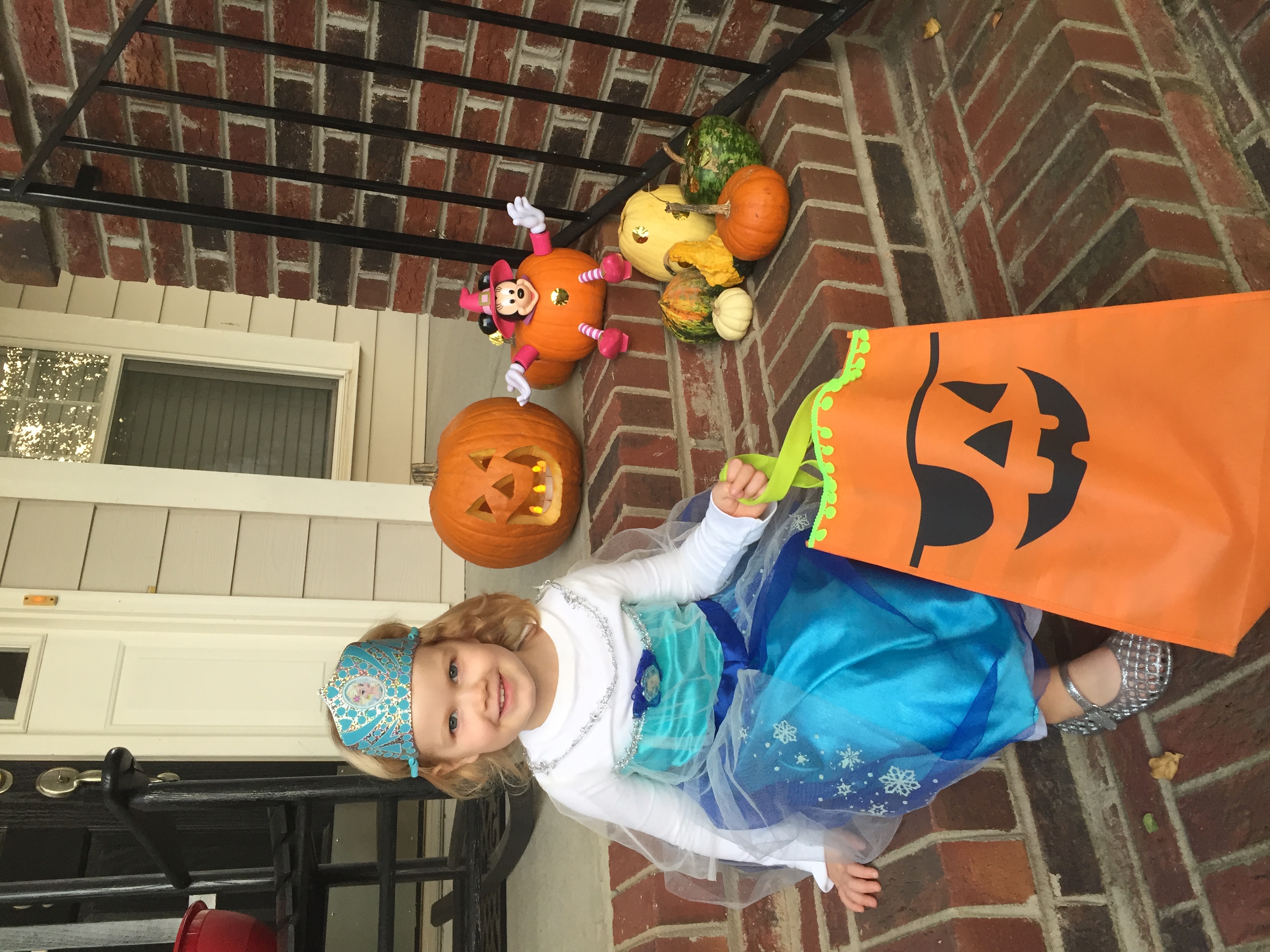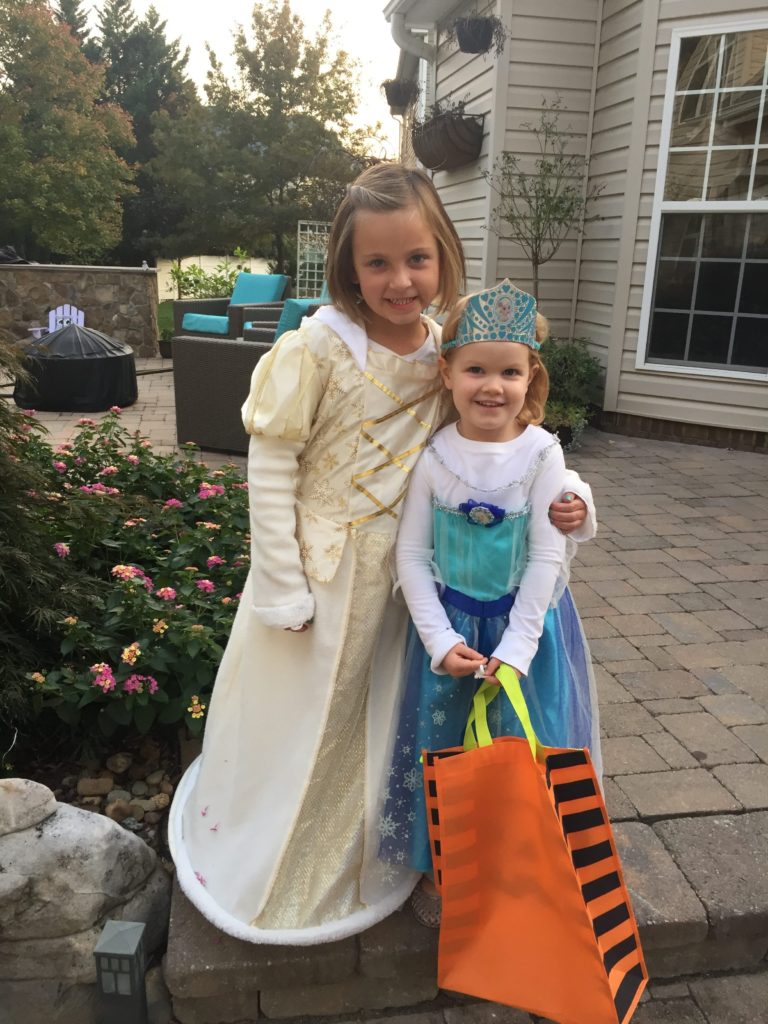 This Halloween was the best yet! Big Sis dressed as Elsa and Little Sis was a sweet skeleton. (Side note – I’d originally planned for the girls to be Dorothy and Toto…but starting Oct. 1 Claire’s teacher began asking the students what they were going to be for Halloween. Claire stuck with “Elsa” all month and I didn’t have the heart to convince her otherwise!)