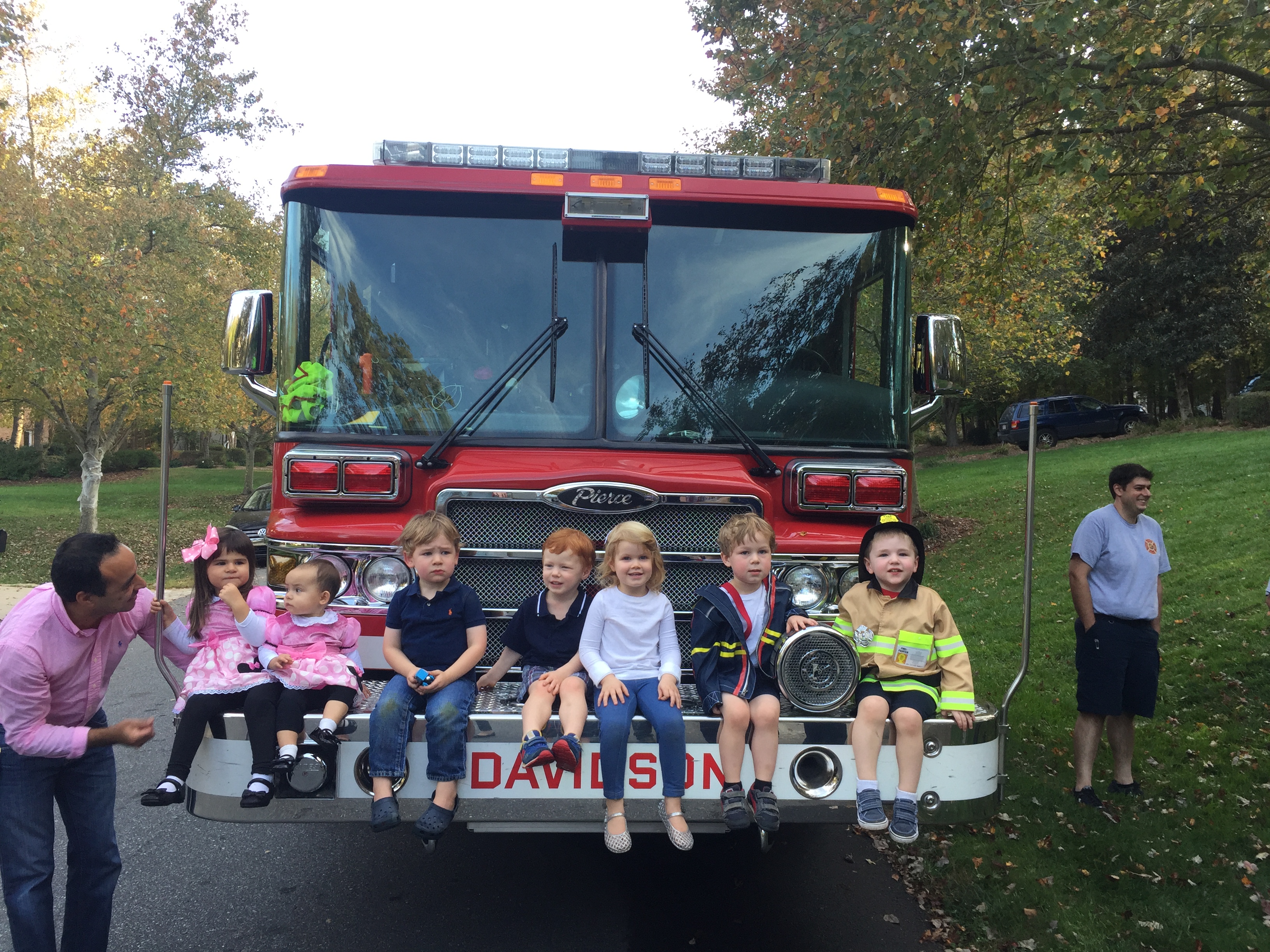 Lots of activities made the holiday extra festive: Claire’s preschool costume parade, the Davidson Halloween March, the Cornelius Halloween Scavenger Hunt, Spencer’s 3rd birthday party (which included a fire truck), carving a pumpkin with Daddy, and trick-or-treating all over our neighborhood.