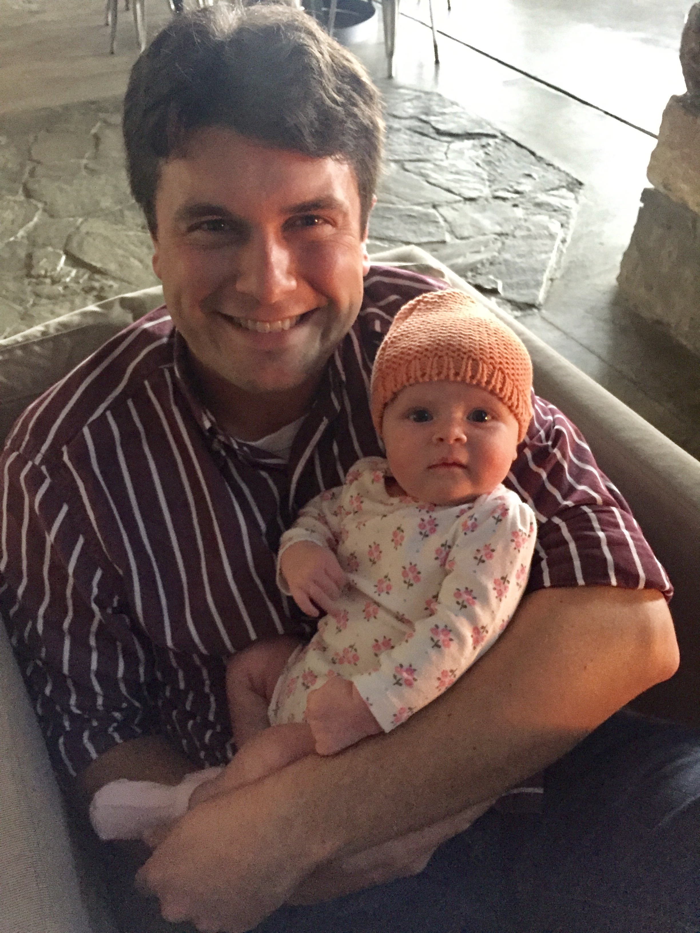 There are not a lot of playtime options for a two month old, but one of your favorite things is “naked time” — kick, kick, kicking while (you guessed it) naked on a blanket. You’re also an amazing traveler. We took you to Asheville for Nana Kay’s birthday and you were a champ!