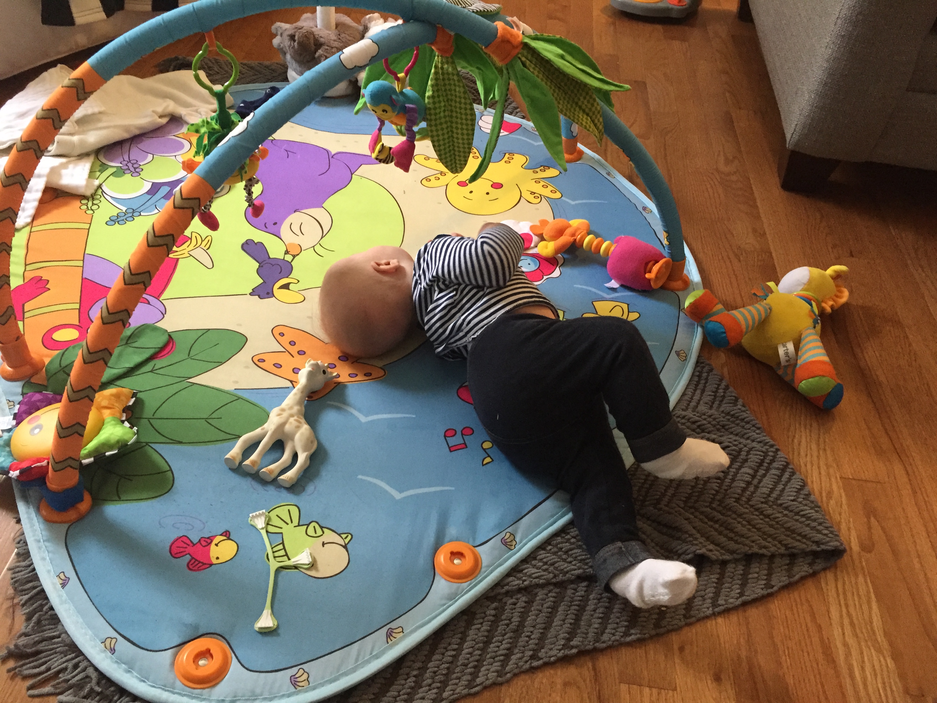 The rest of your playtime is spent on the activity mat, which you still seem to adore. This is where we give you your beloved “nakey time” each day. Baby bliss!