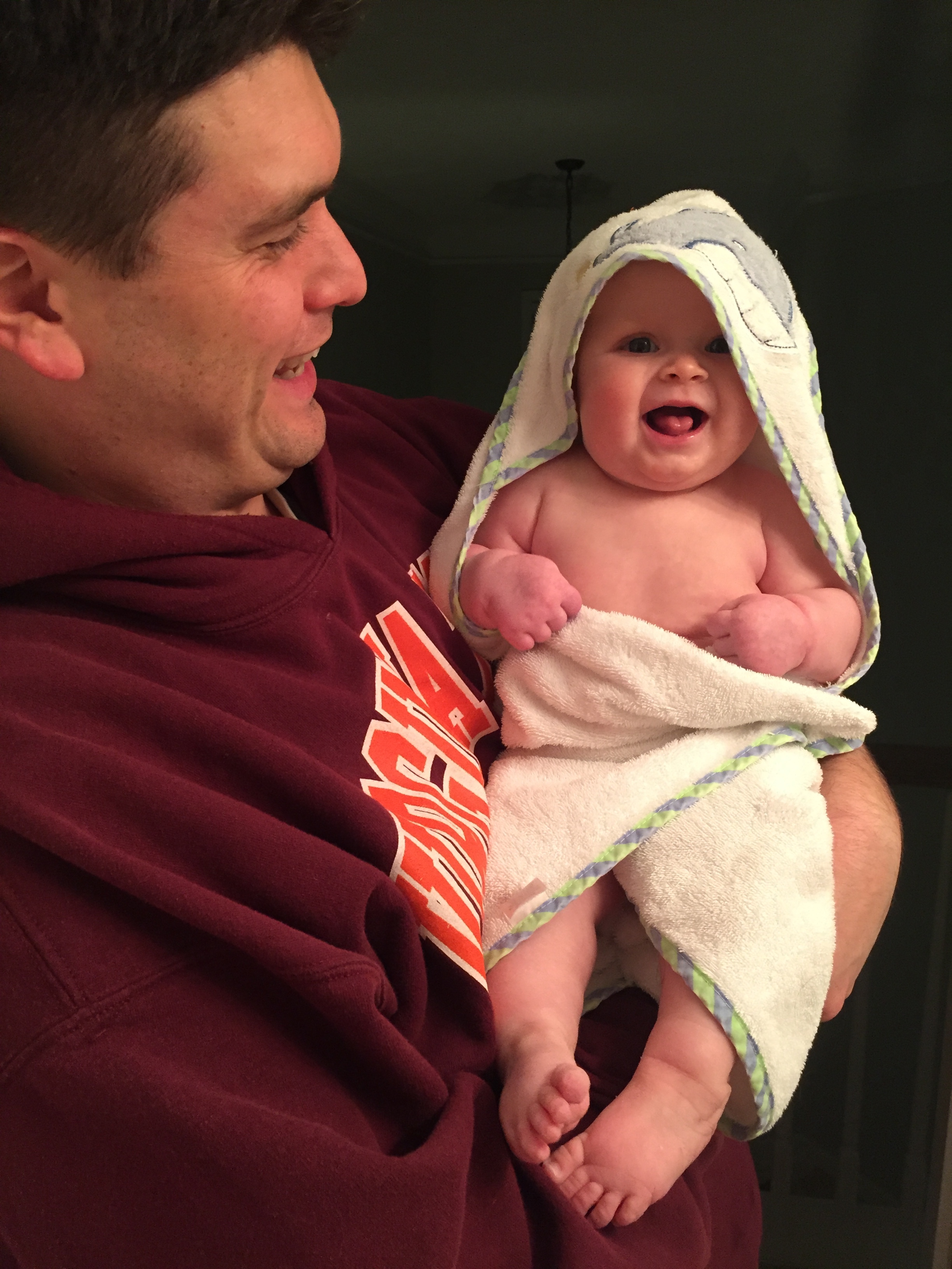 Girlfriend, you love to keep Mommy and Daddy on our toes. We never know what kind of night we’re going to have! You typically go down around 6:30 p.m. (still swaddled and with white noise) and will wake up once during the night…and again around 5 a.m. The 5 o’clock wake is timely, since that’s when we get up for the day. But the mystery middle-of-the-night wake-up isn’t our favorite. Thankfully you’re quick to eat and then back to sleep…so we don’t mind it much. (Plus, we’ve certainly learned how quickly these baby days pass.) But it will be nice to get back our regular, solid-sleeping stage soon.