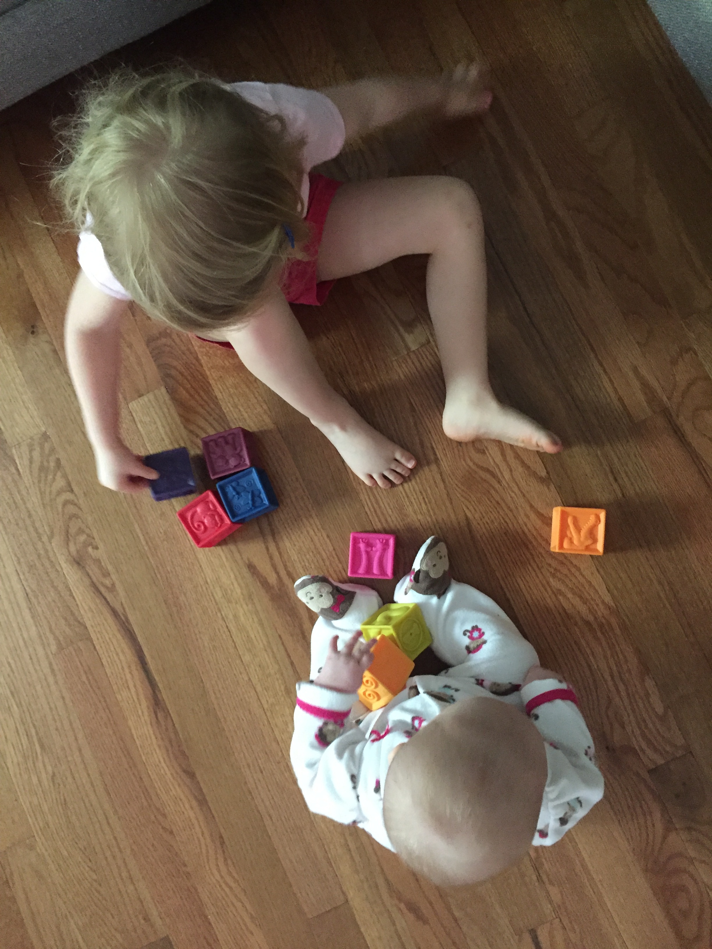 Nursing is still going really well, averaging about 5-10 minutes every 3-4 hours during the day. (Short, sweet, and productive — just like Claire!) My favorite part about nursing you is that you like to hold hands while you eat. Sometimes you’ll grip one whole hand around my finger, while sometimes you’ll take both hands and explore mine the whole time. It’s a sweet, comforting action, and reminds me to stay present in this fleeting time together.