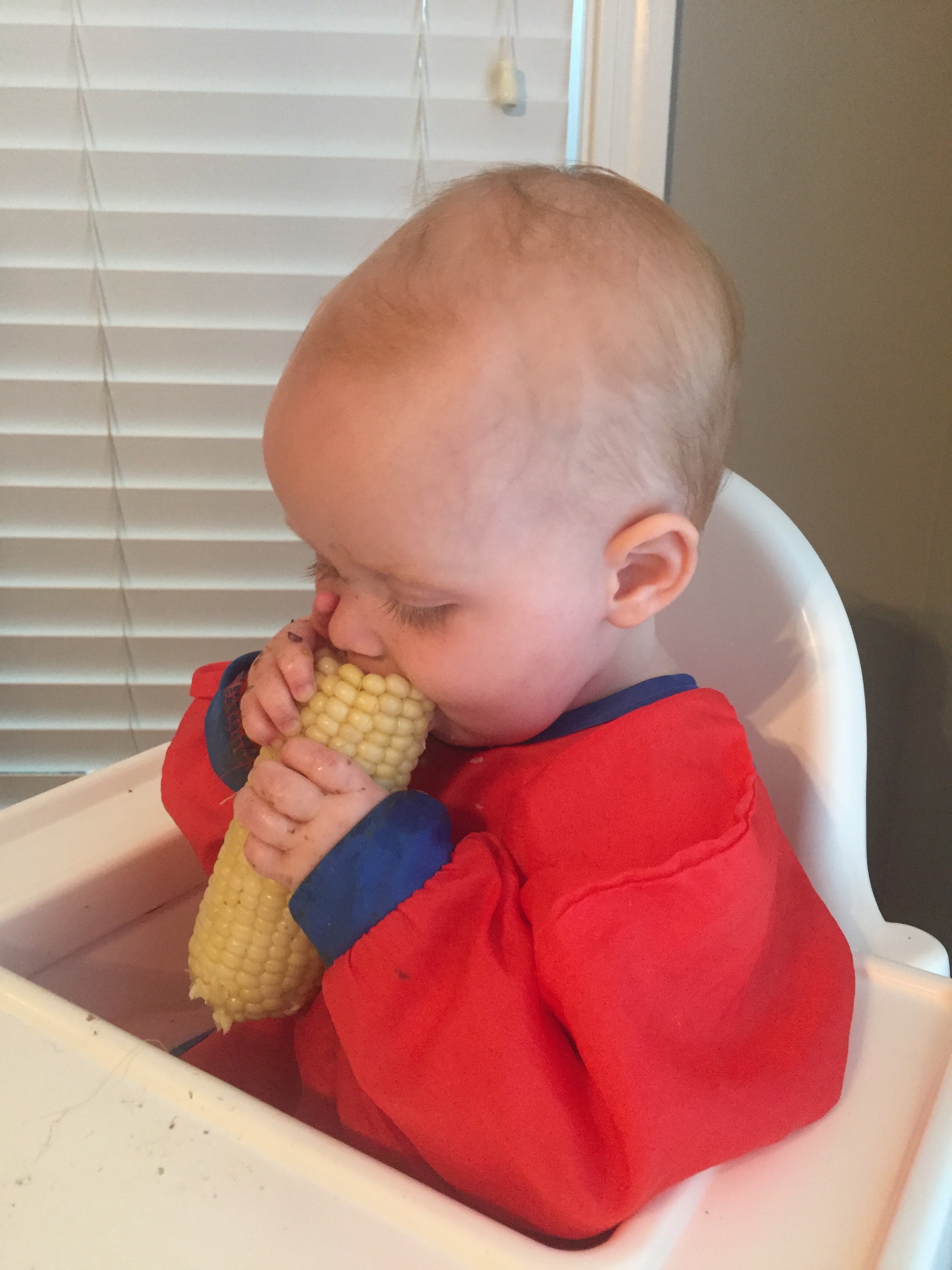 Baby-Led Weaning for the win: You’re such an explorative eater, and will try anything we put in front of you! From eggs and olives to fish and fries, you love it all. There are certainly favorites (watermelon, blueberries, bananas, frozen peas, and spaghetti) — but so far you’ve been game for everything we’ve tried. Such fun!