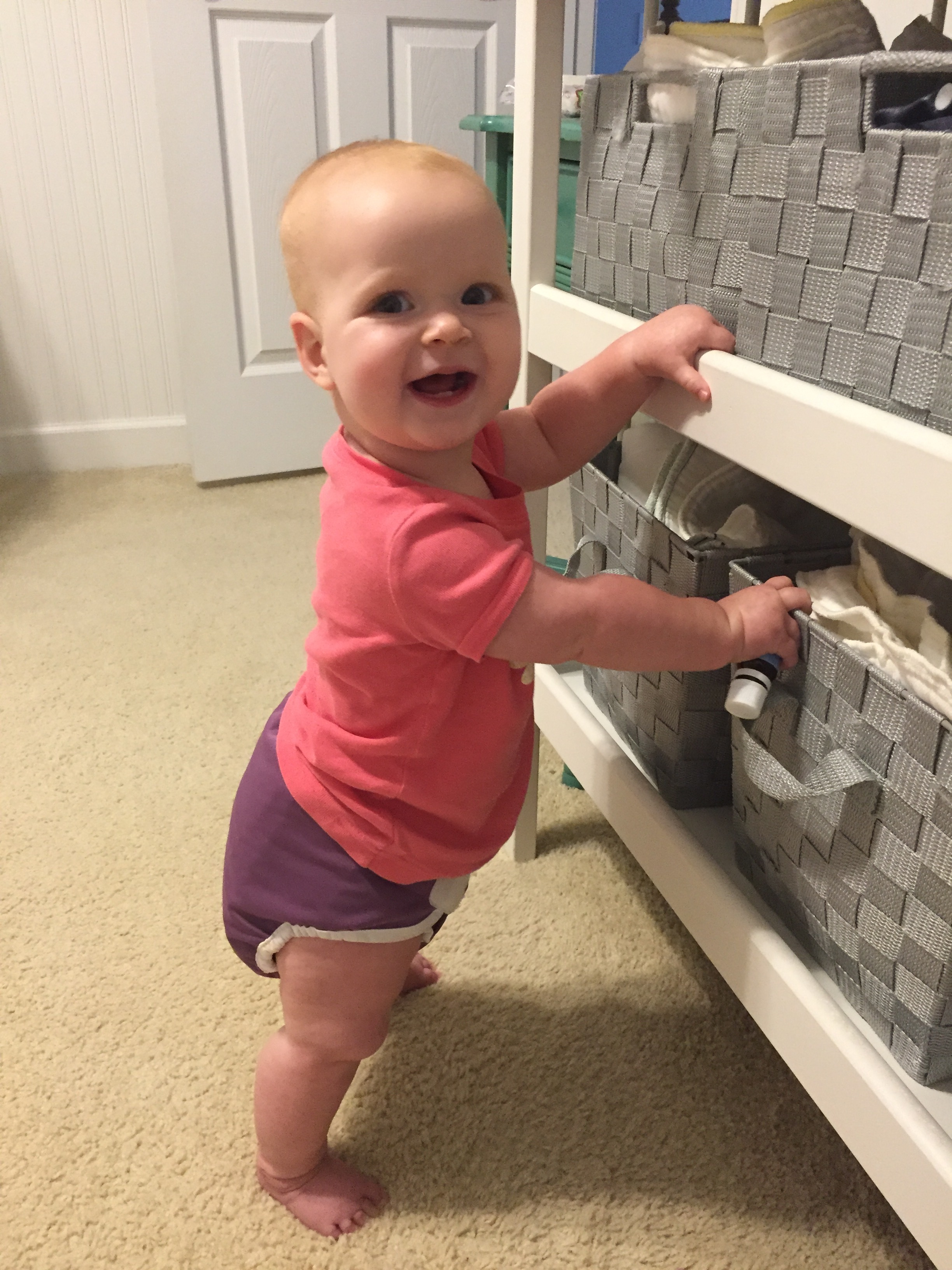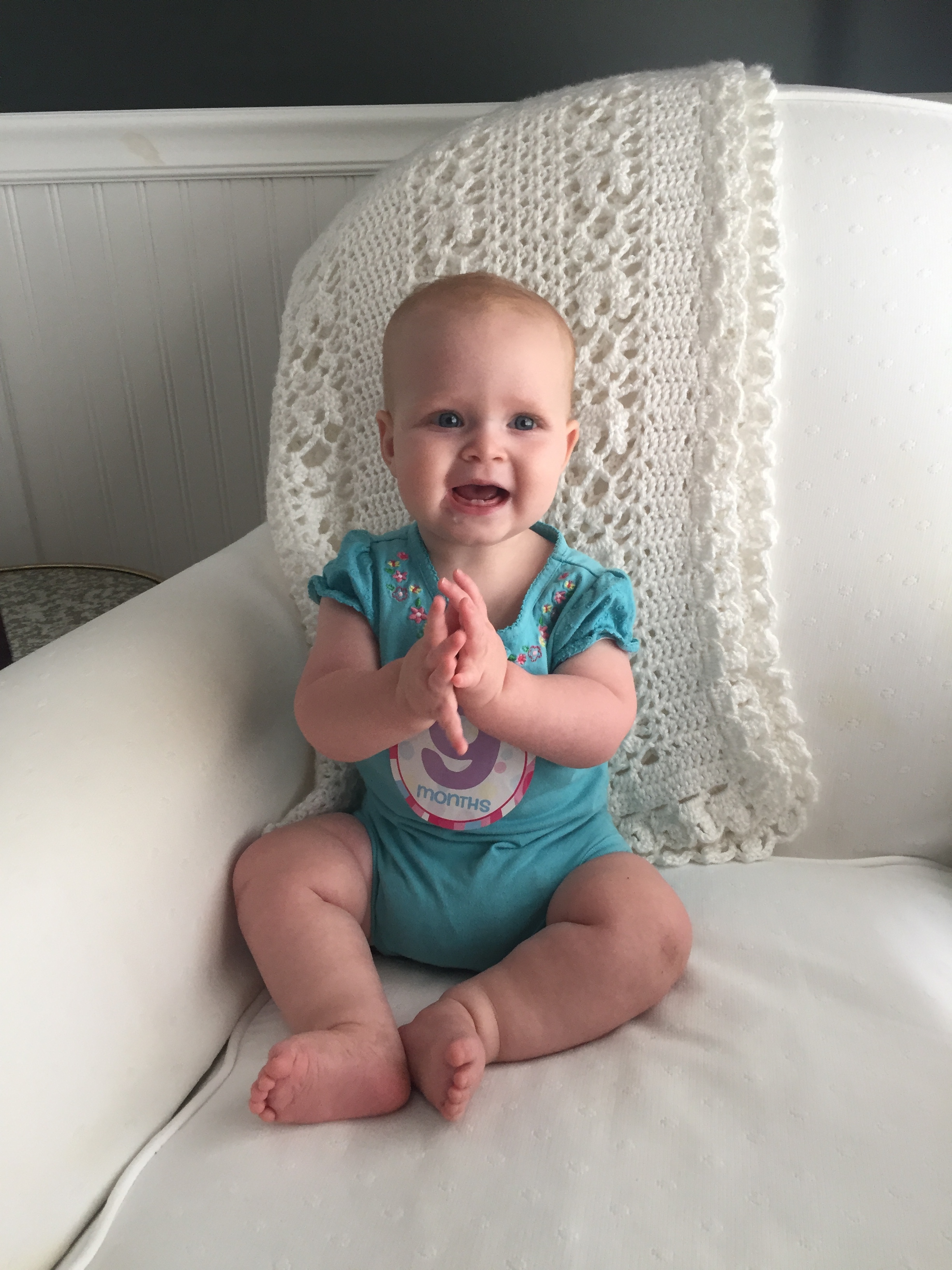We have a feeling the next few weeks will be filled with excitement as you start cruising around, Cora Kay. It’s still hard for us to believe that our baby girl is almost on the move. Loads of fun to come, little one! We adore you.