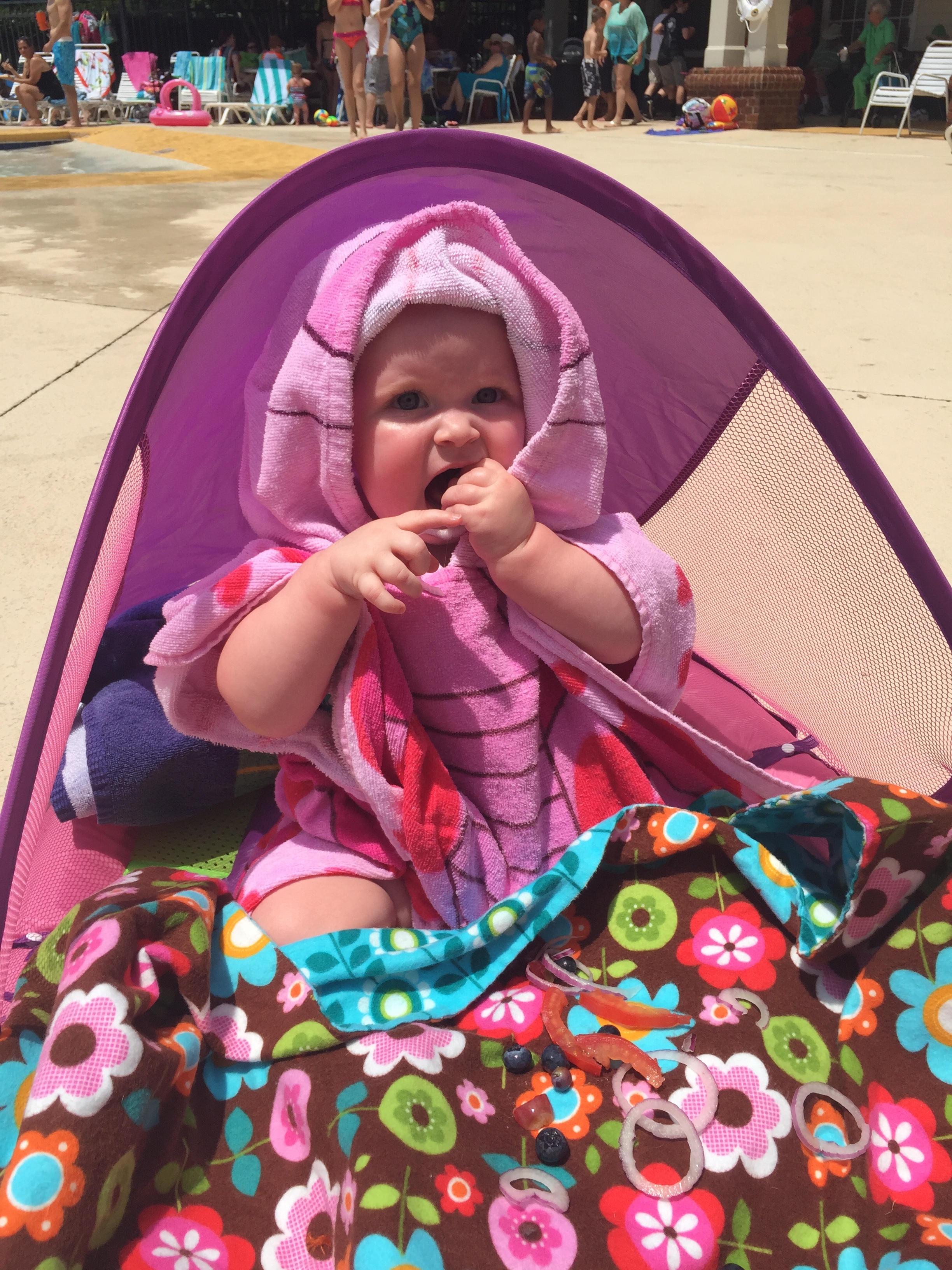 Month nine was filled with adventure — your first “swim” in the neighborhood pool, your first 5k in the jogging stroller, a big trip to Bethesda and Richmond, plus plenty of fun in between.
