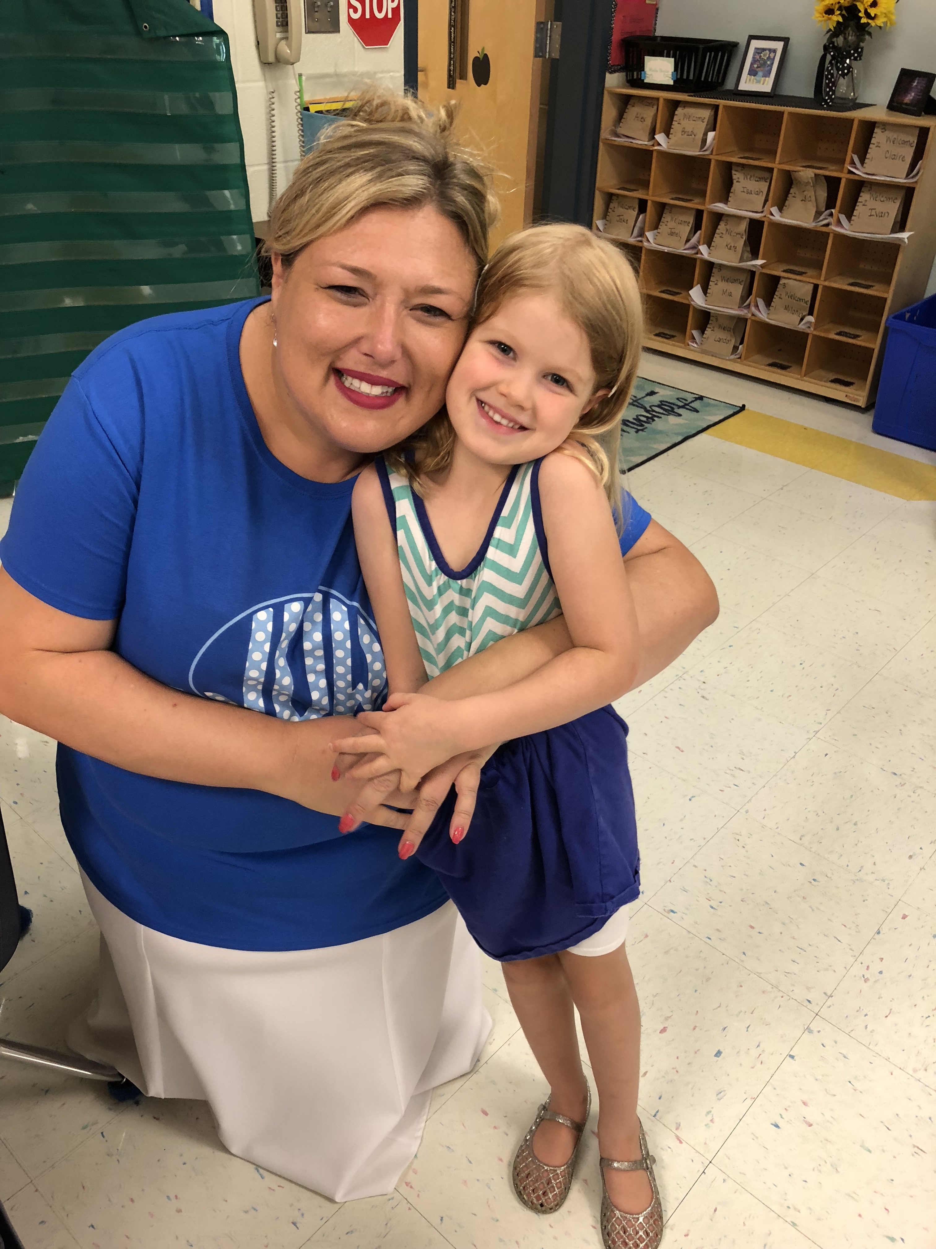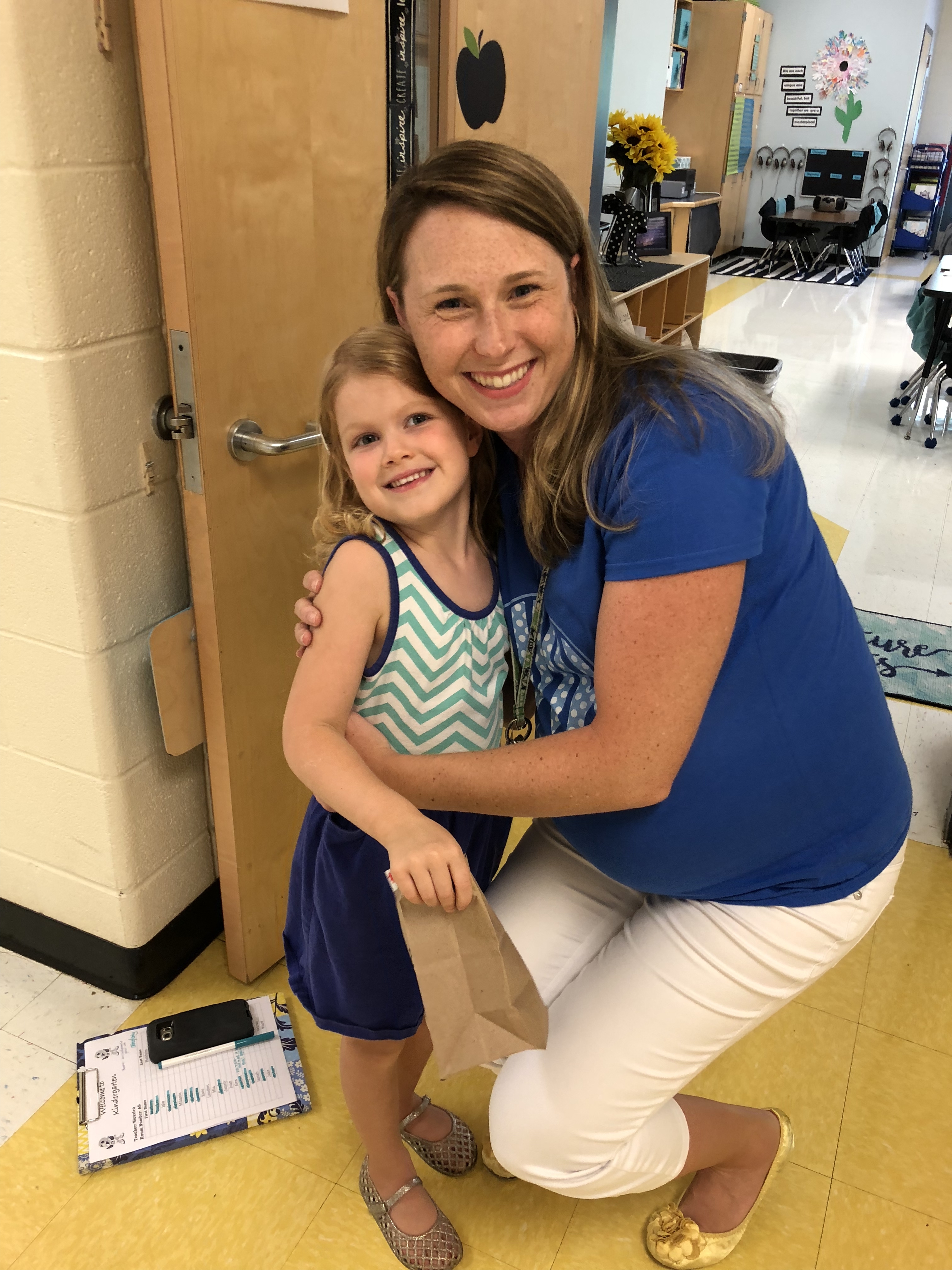 The next week we went as a family to Open House, where we toured Claire’s classroom and visited the library, cafeteria, and more. Her main teacher, Mrs. Nicastro, is now out on maternity leave, but Claire is fortunate to have Ms. Lyon as an assistant teacher. Both are loving and bubbly and exactly what I pictured in a kindergarten teacher!