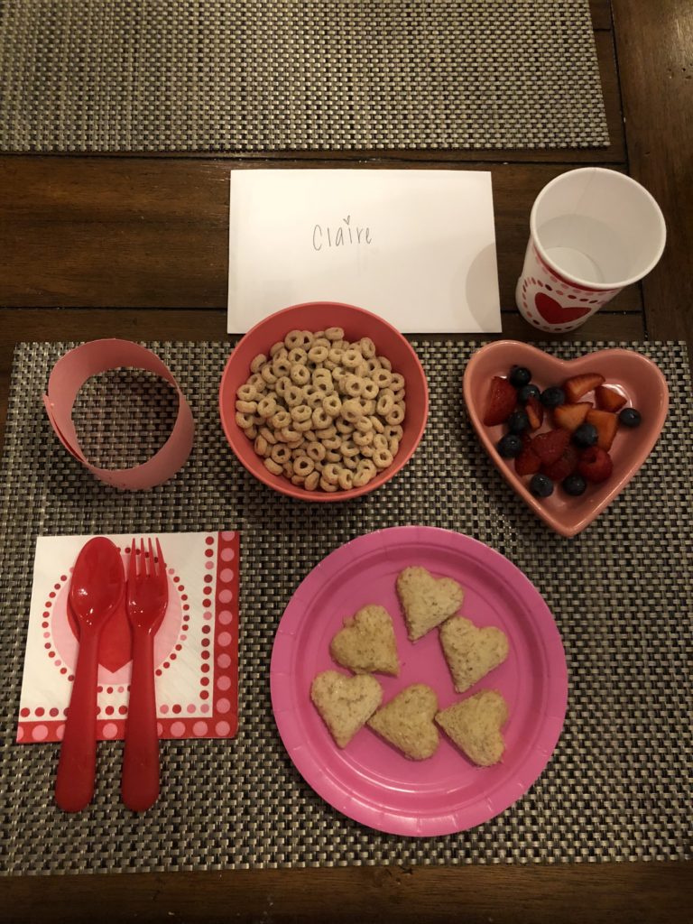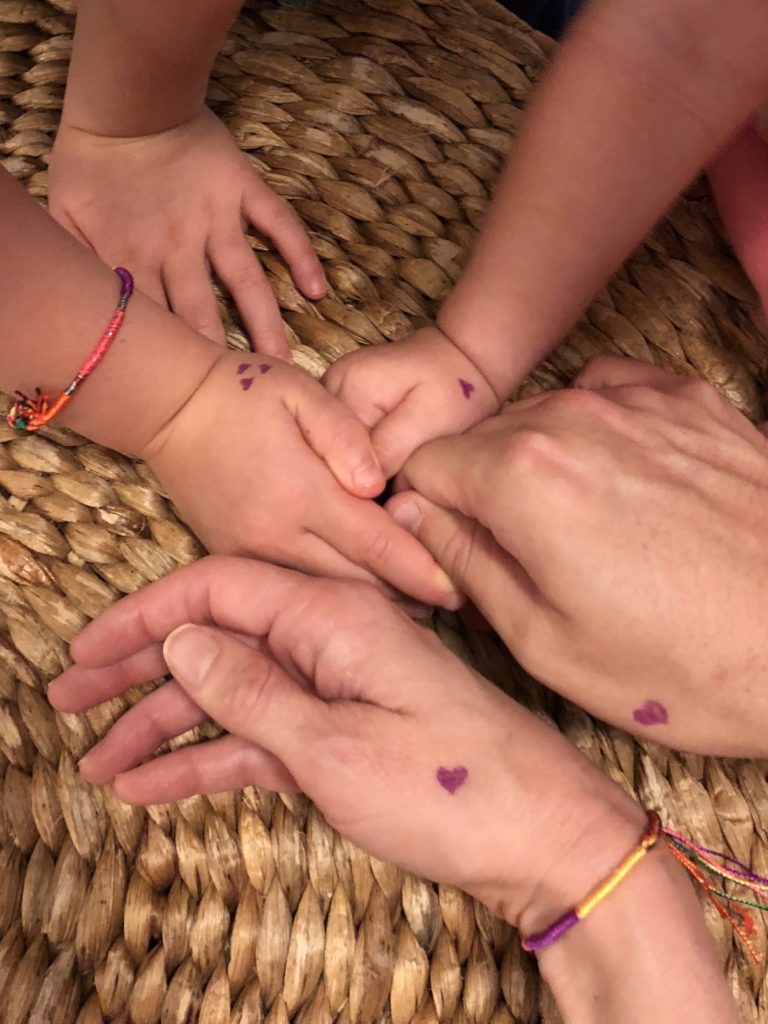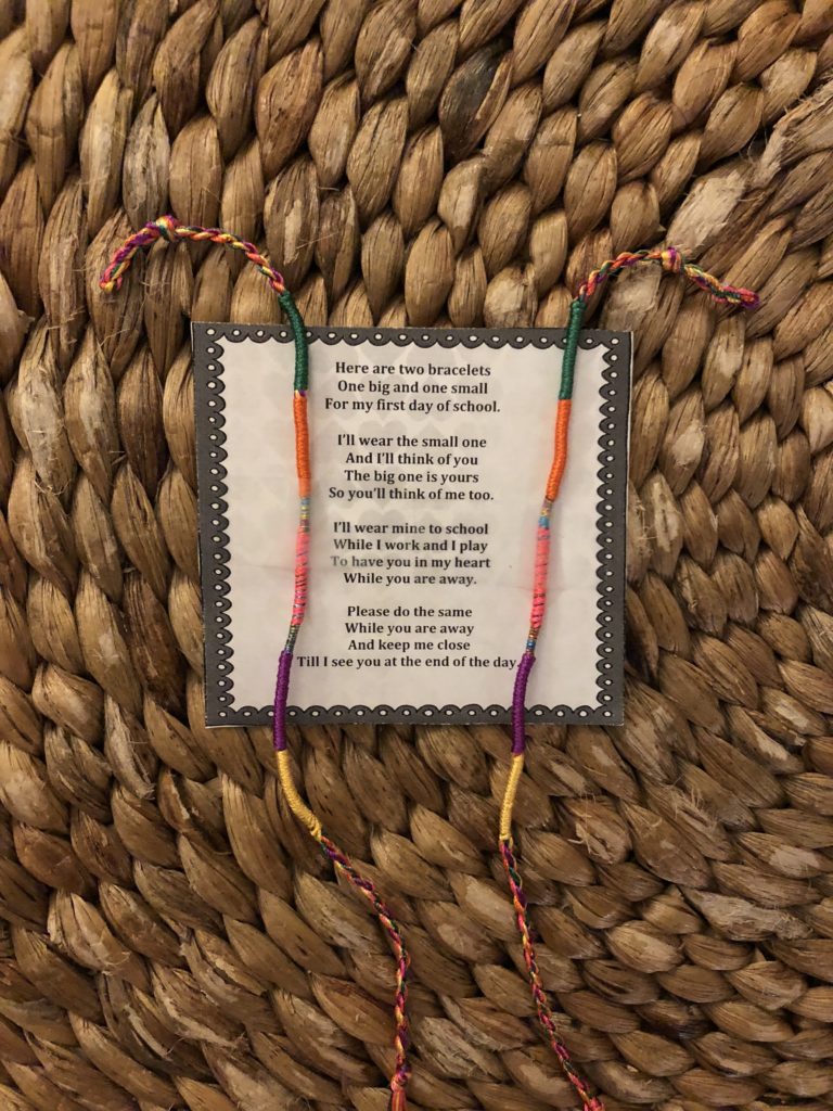 Claire woke up ready to roll on her first day! We enjoyed a special breakfast together, then drew hearts on our hands (to look at when we missed each other), tied on our parent-kid friendship bracelets (a gift from Claire’s knowing teachers), and prepared for our stroll to school.
