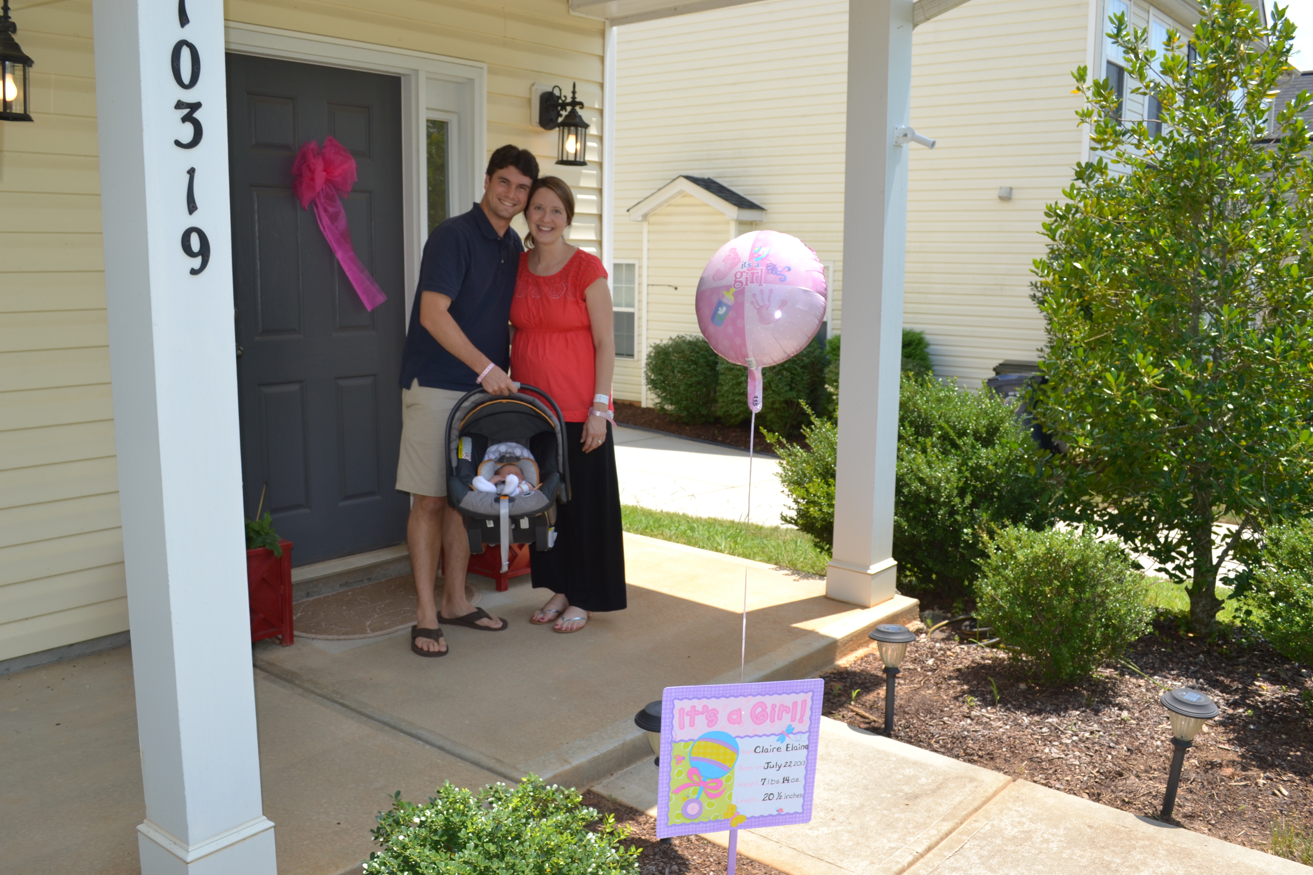 Our first night in the hospital was wonderful — Claire slept beautifully. The second was a little rough — she was cluster feeding and we stayed up all night. We checked out on Wednesday morning and came home to a decorated house and more love and support than we ever knew possible. God is so great. And our families are too!