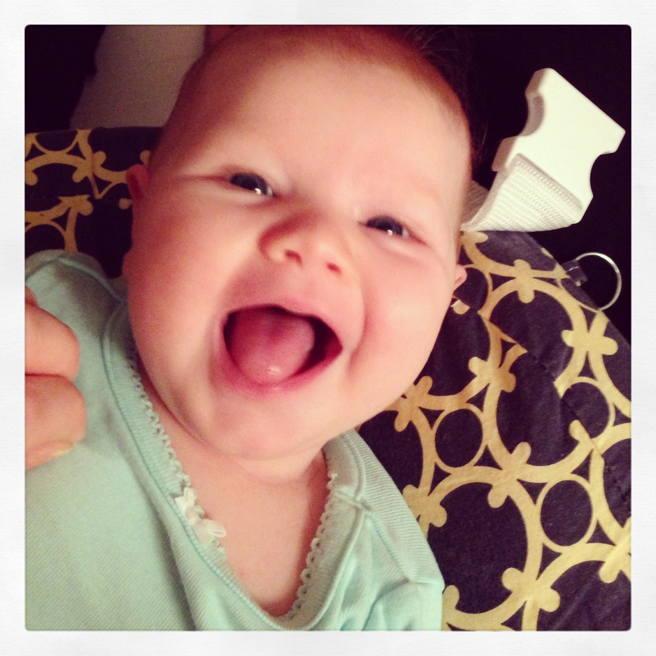 The highlight, though, is your little voice. You’ve started to be quite chatty, giving us “ah-goo” and “hiiii” and the most amazing laugh. Uncle Michael wins the prize for longest “conversation” so far — you sure had lots to tell him!