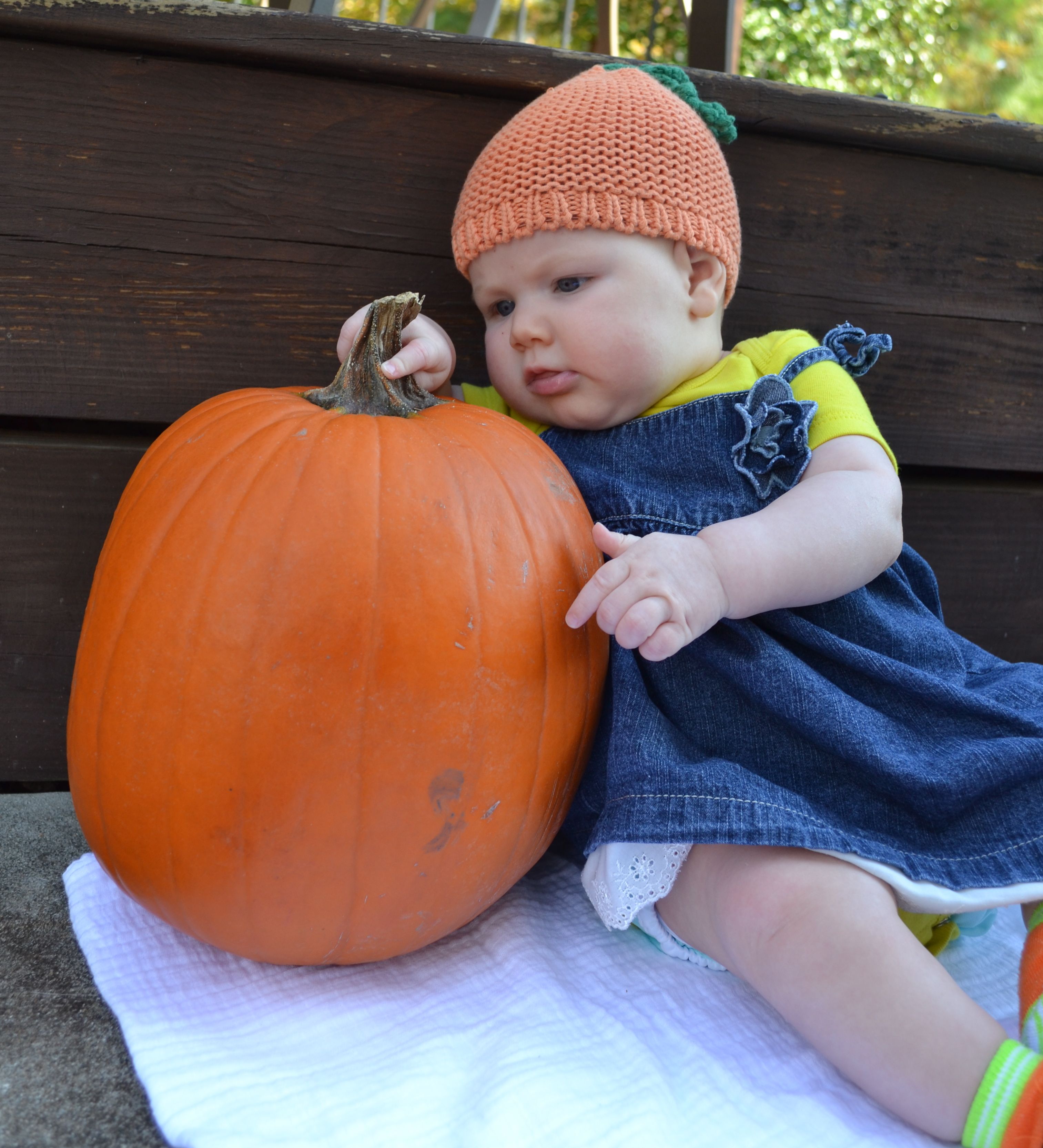 We tried to take a few other fall photos, but someone was feeling rather hungry. First she went after the pumpkin: