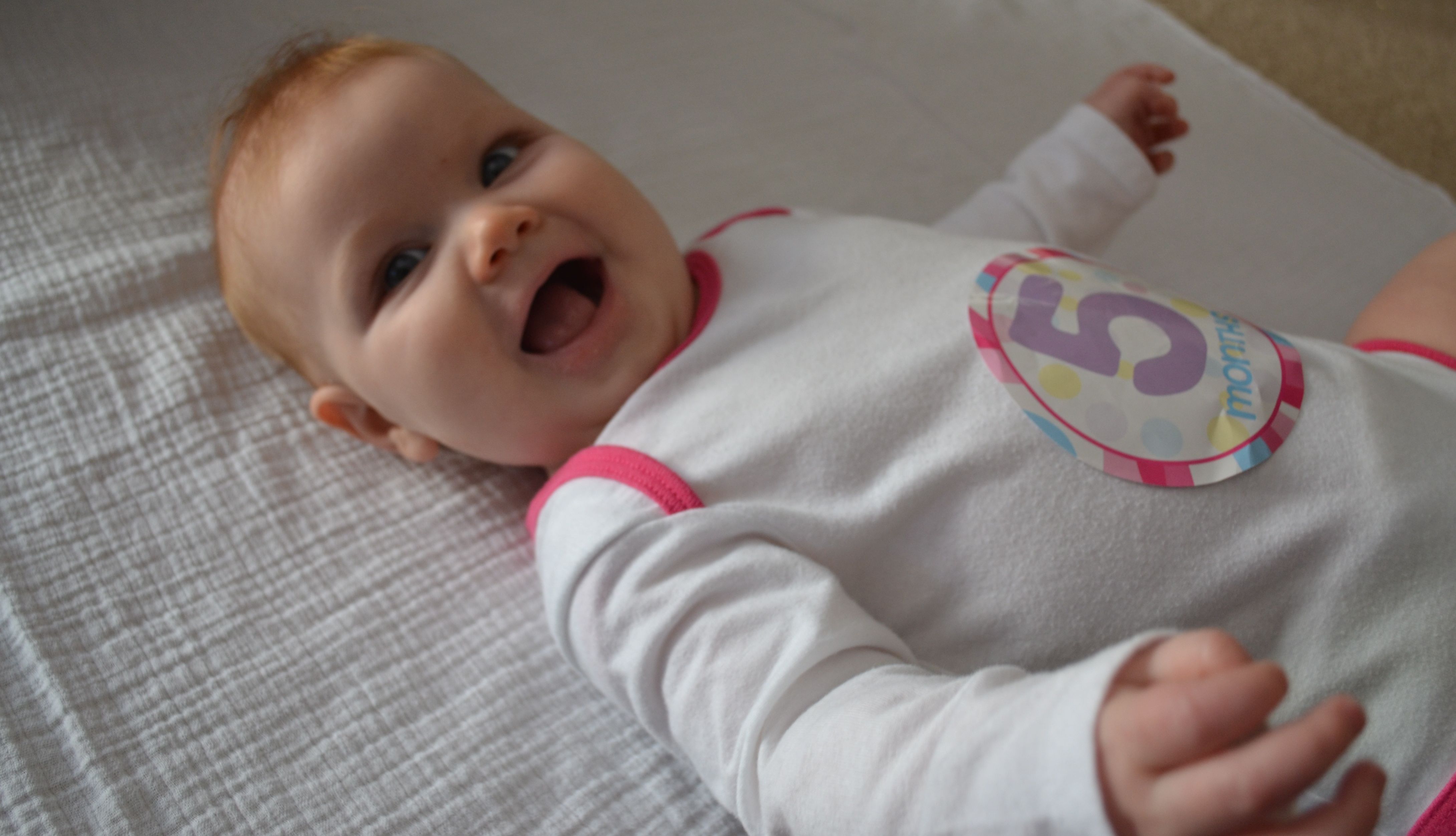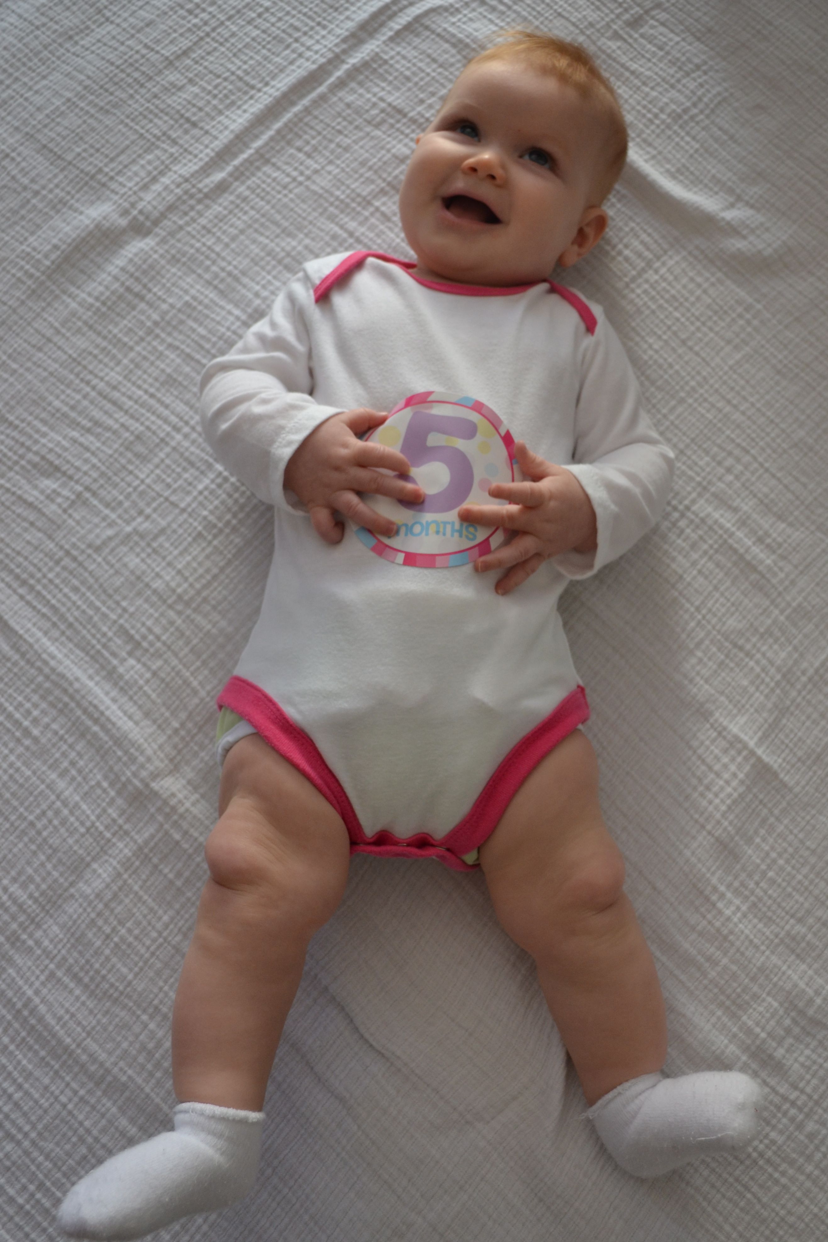 Precious baby girl, I have to start with a disclaimer: This post is going to be filled with exclamation points (!!!) and superlatives (you’re the sweetest, cutest, bestest baby we know!). You see, your Mommy and Daddy are allowed to say things like this. And although we’ve declared it nearly every month, FIVE months is our favorite stage yet!