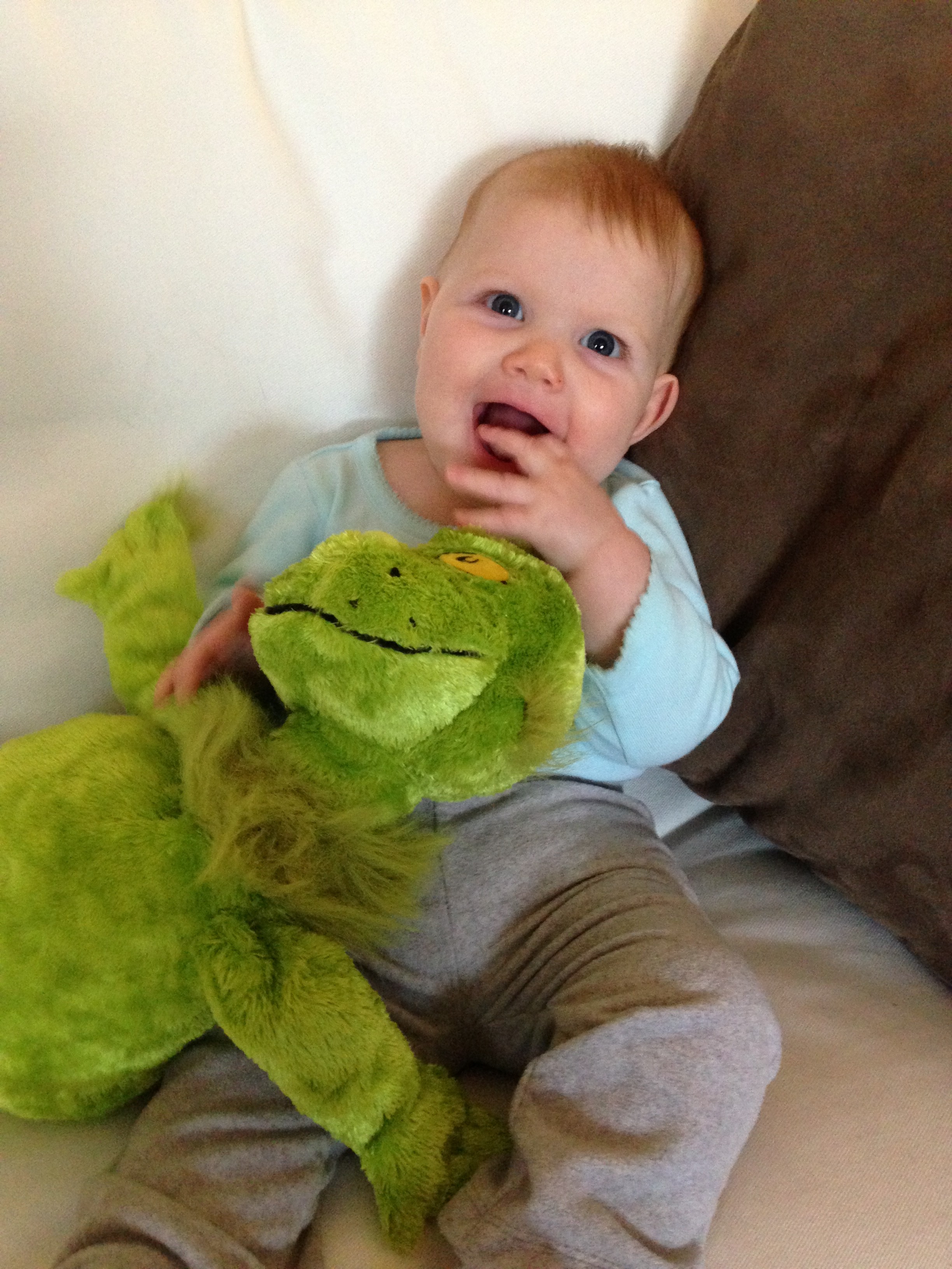Although most toys make their way to your mouth pretty quickly, you’ve been taking a little extra time to study them lately — and we love to watch your curiosity grow. Although you aren’t fully engaging with toys, we can tell that you’re intrigued by sound and texture and color. It’s fun to know we’re on the horizon of so much great change!