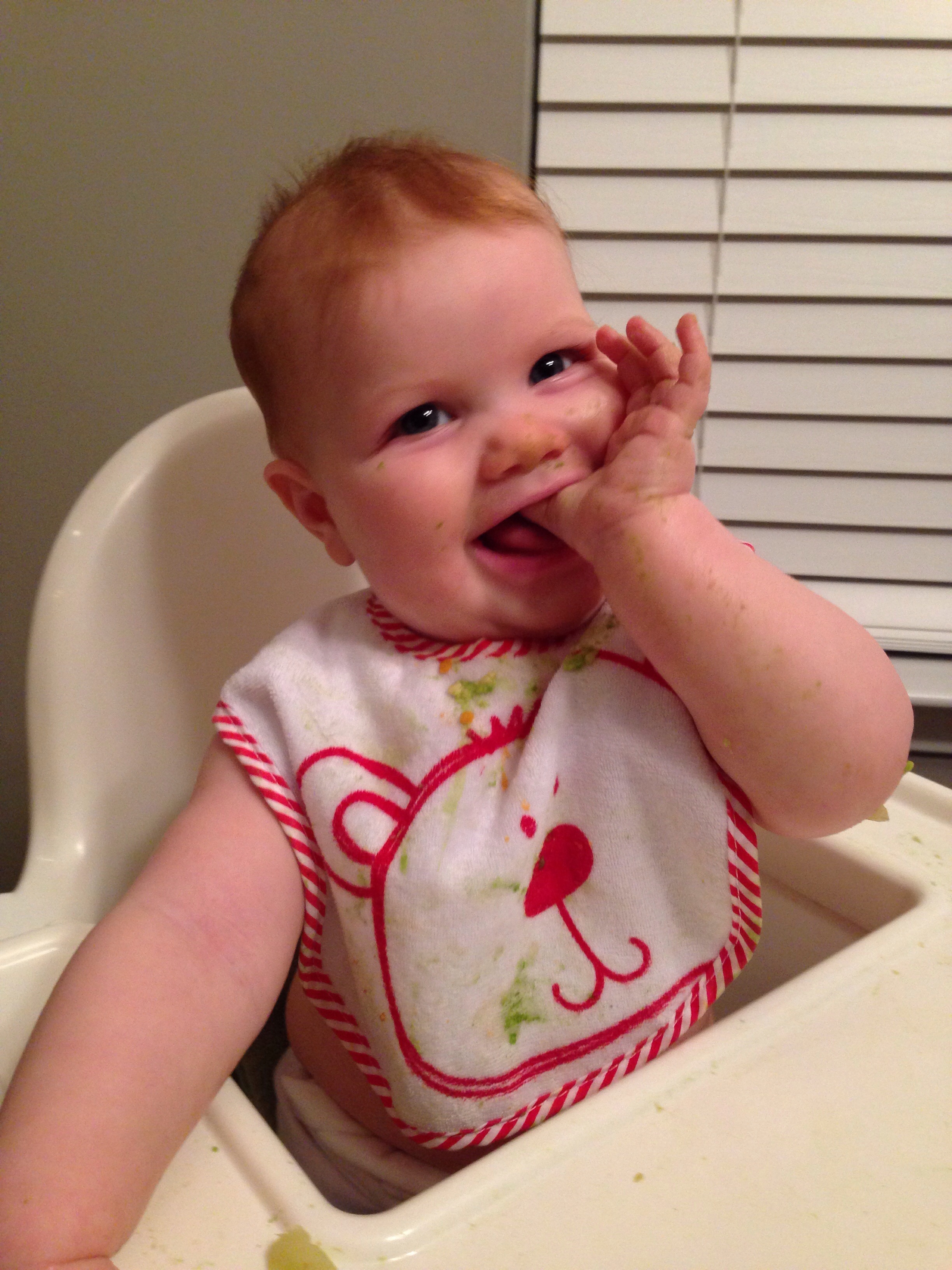 One particularly bright spot of our Birmingham weekend was introducing you to SOLIDS, a wonderful milestone for our curious kiddo. Since food before age 1 is only for fun, we’re following a cool plan that lets you feed yourself, freeing Mommy and Daddy up to take your picture! You’ve explored more than a dozen foods already and seem to absolutely delight in the process. (I’ll do another post soon with a video of your messy mealtime playtime — it’s hilarious!) Our hope is that you’ll learn to enjoy a variety of foods, and have a flexible palate.